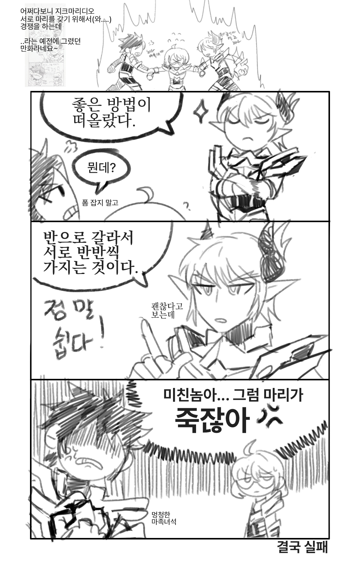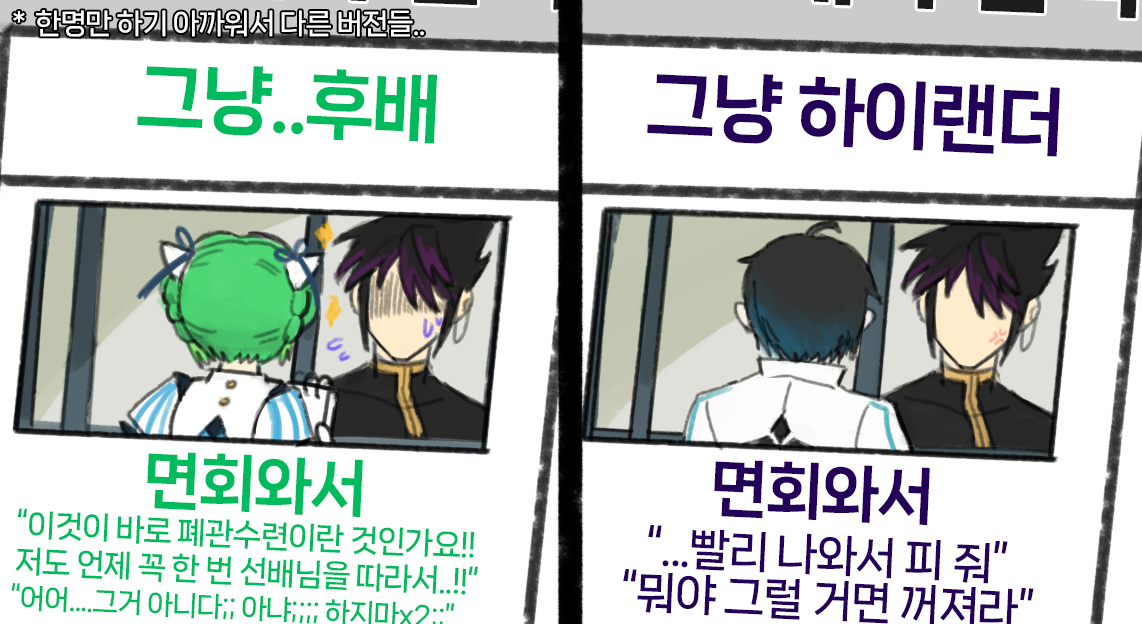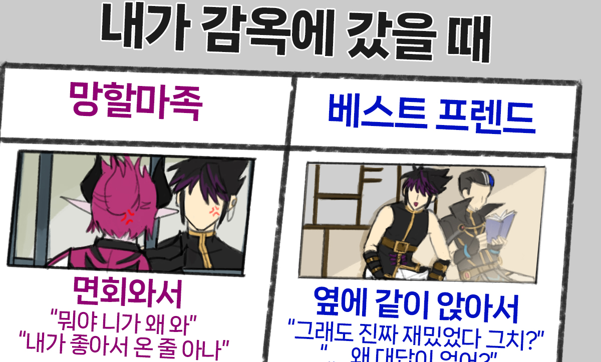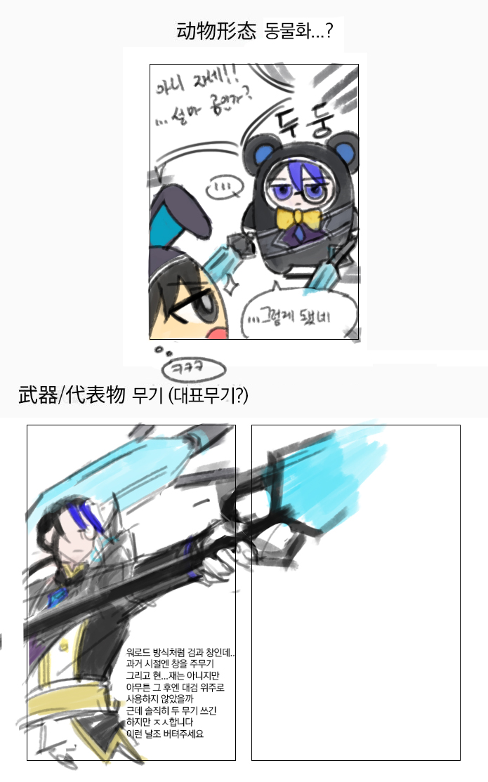 어쩔 수 없더라구요 나중에 얘네 둘 만나는 만화식으로 그려보고 싶네요..